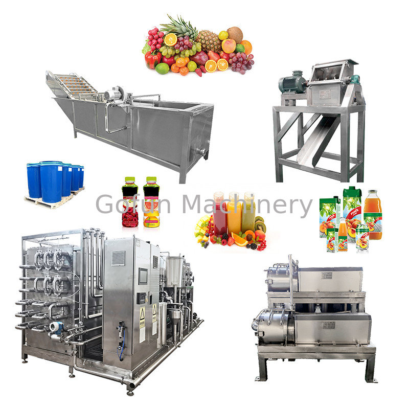 Thiết bị sản xuất nước ép cô đặc hương trái cây hoặc bột giấy hương trái cây: Trái cây đã qua chế biến được chế biến thành nước ép cô đặc hương trái cây hoặc bột giấy hương trái cây thông qua các quy trình như ép, nghiền và cô đặc.